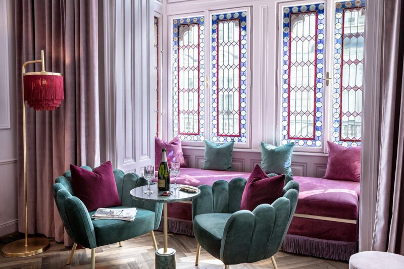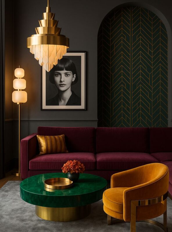 If you’re looking for your Great Gatsby moment, now’s the time. AND I AM IN LOVE! Art Deco is back, baby, with all its glamour, luxury, and bold styling. Ya know, it IS the “NEW Roaring ’20s!” Think glossy lacquer, marble, mirrors, brass, gold, and chrome, and geometric detailing like chevrons and sunbursts EVERYWHERE! SUPER moody jewel tone color palettes are perfect for that Art Deco vibe. (psssst..two of the photos below are from a boutique hotel I stayed in whilst in Vienna, Austria last year!)